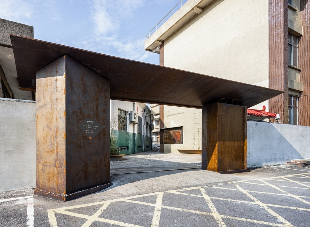 ▲園區導入耐候鋼作為主要視覺素材,橘紅色鏽蝕質感與百年機務庫的歷史層次完美呼應。(圖/參山處提供)