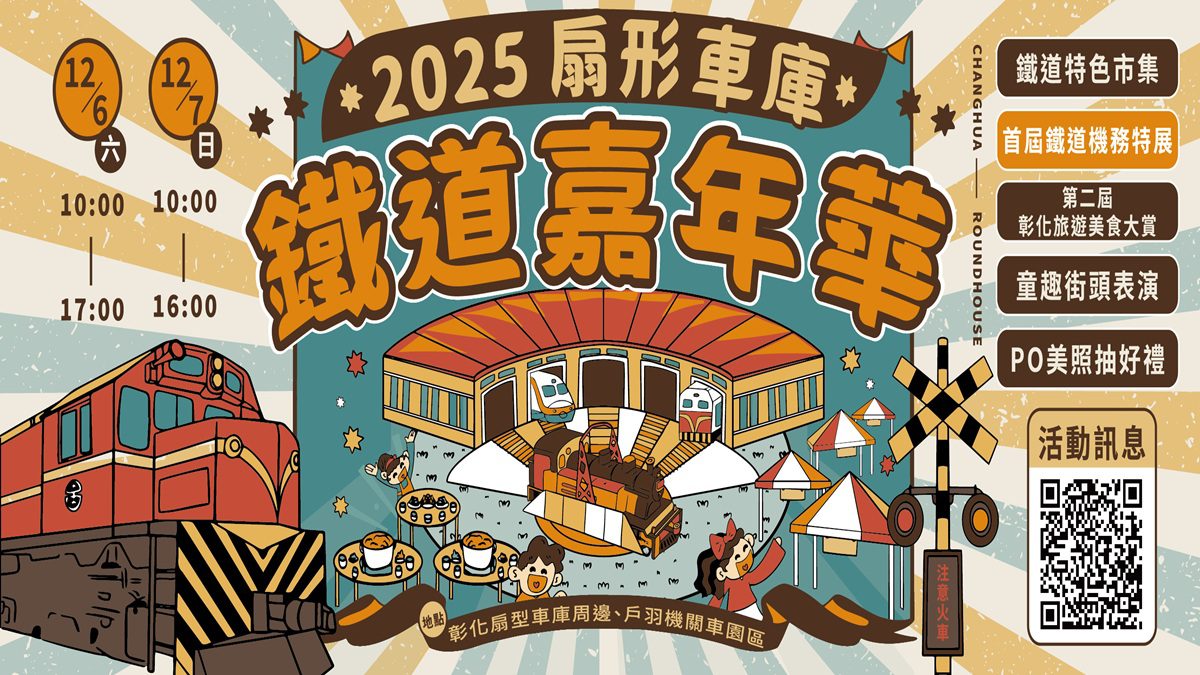 交通部觀光署參山國家風景區管理處攜手彰化縣旅遊產業協會,於本周末12月6號至7號在「戶羽機關車園區」,舉辦「2025扇形車庫鐵道嘉年華暨第二屆彰化旅遊美食大賞」,國定古蹟「彰化扇形車庫」在「2025台灣設計展」封閉整修後,以全新的工業美學亮相,再度吸引全台旅客目光。這座獲選為交通部觀光署「觀光亮點票選」的人氣景點之一的百年車庫,搭配市集、美食與鐵道文化活動,邀請民眾在普發現金後,安排最划算的鐵道輕旅行。