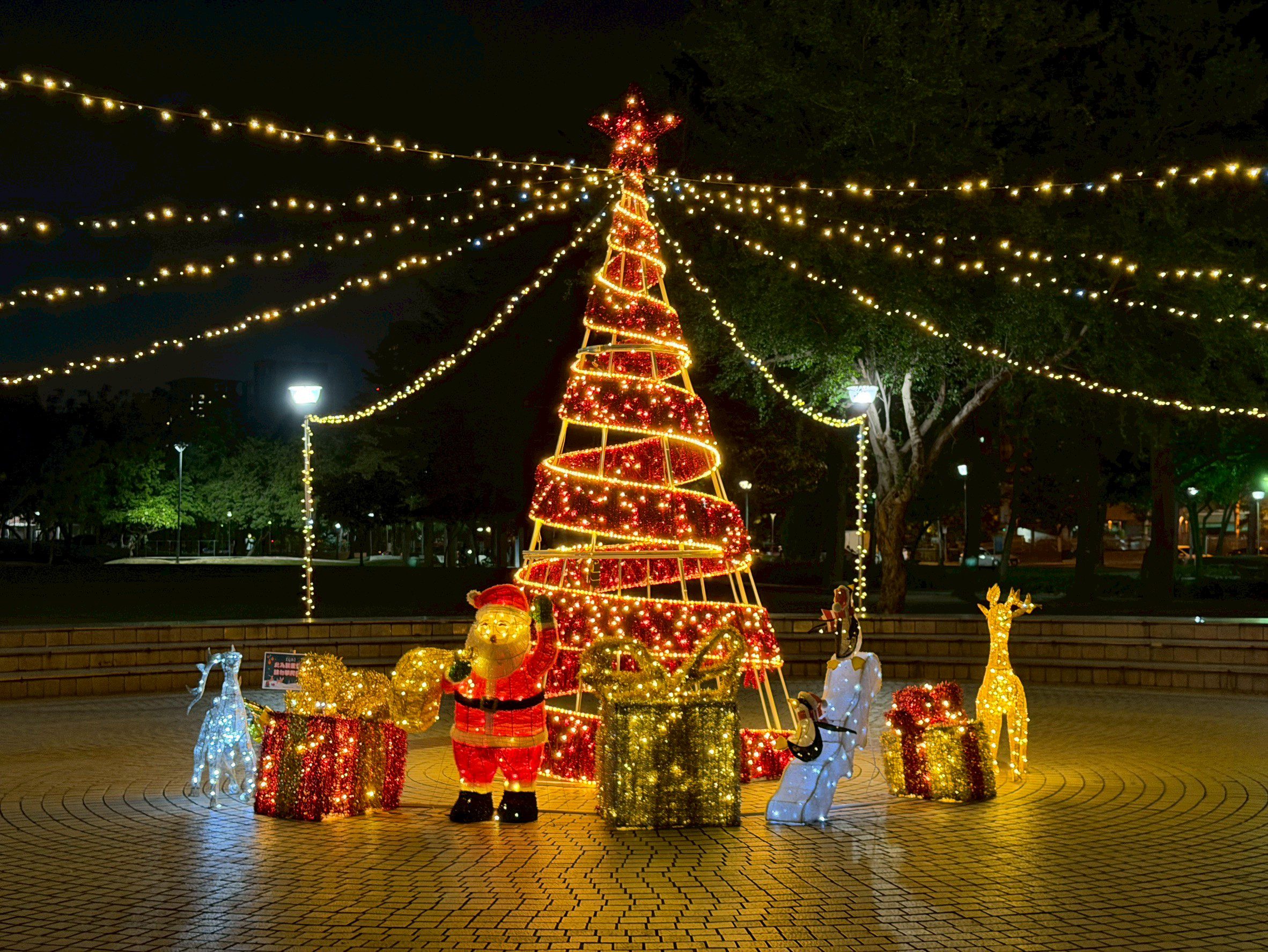 建設局長陳大田表示,為歡慶聖誕節及歲末迎新,特別規劃於市區公園設置節慶燈景,其中豐富公園於入口廣場打造可愛亮眼的聖誕樹造景,聖誕老人與馴鹿環繞其間,帶來滿滿祝福;湧泉公園則於滿月指環觀景步道周邊規劃「光之迴廊」,結合可愛小動物燈飾及手捧糖果的聖誕老人,增添活潑趣味,歡迎民眾前來打卡拍照,感受濃濃節慶氣息。