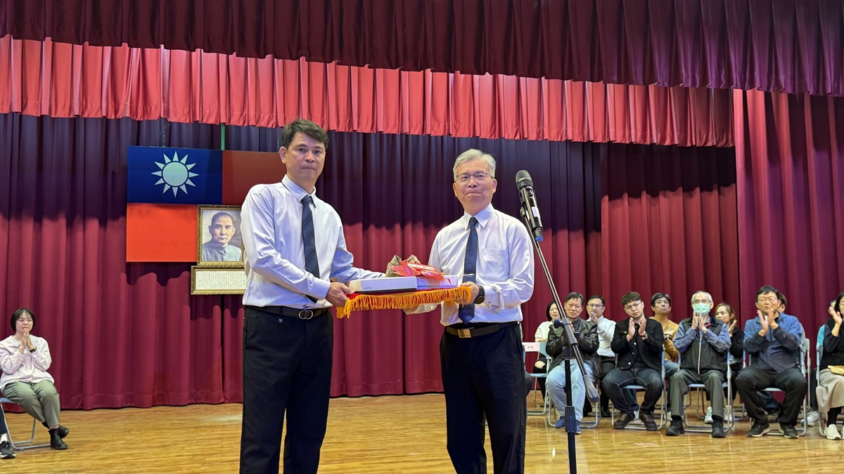 ▲由家長會長代表全體家長獻上象徵好兆頭的三樣吉祥物—包子、蛋糕與粽子,寓意「包高中」。(圖/溪湖高中提供)