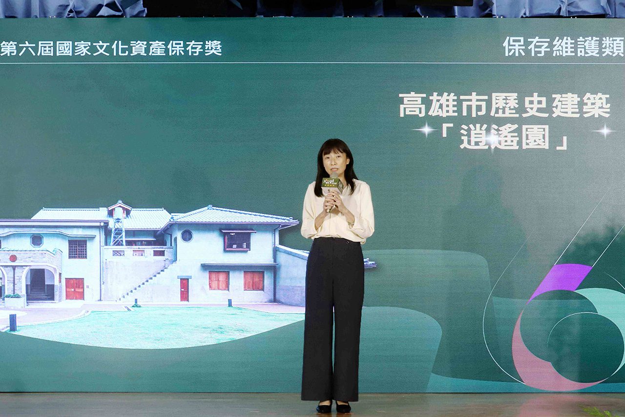 ▲第六屆「國家文化資產保存獎」保存維護類獎項得獎單位代表高雄市政府文化局副局長林尚瑛發表得獎感言。(圖/文化部提供)