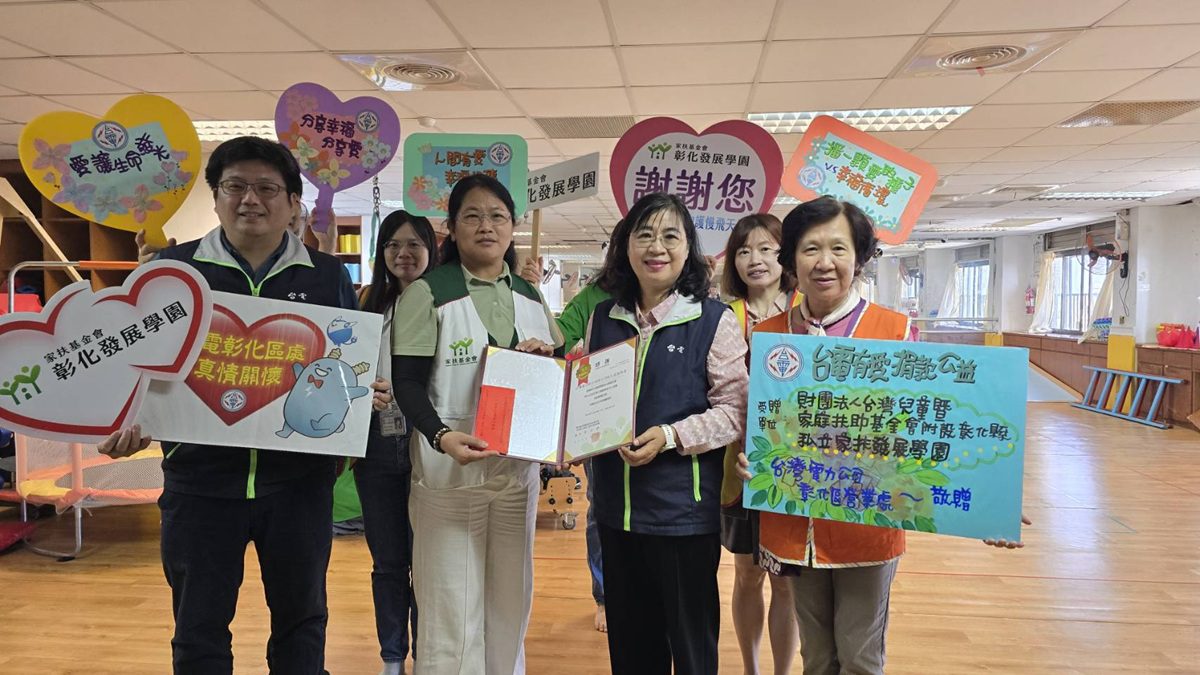 今(10)日上午由台電彰化區處處長王花蘭親自率領區處同仁前往慈愛教養院與家扶發展學園訪視院生並致贈關懷金,以實際行動傳遞溫暖,為社會注入暖流。家扶發展學園園長李國樑也感謝台電長期投入公益並頒發感謝狀,他指出,台灣城鄉差距使得偏鄉學童在教育資源上相對弱勢,期盼透過社會力量的投入與努力,讓弱勢兒童享有安全成長的環境與充分受教育的機會。