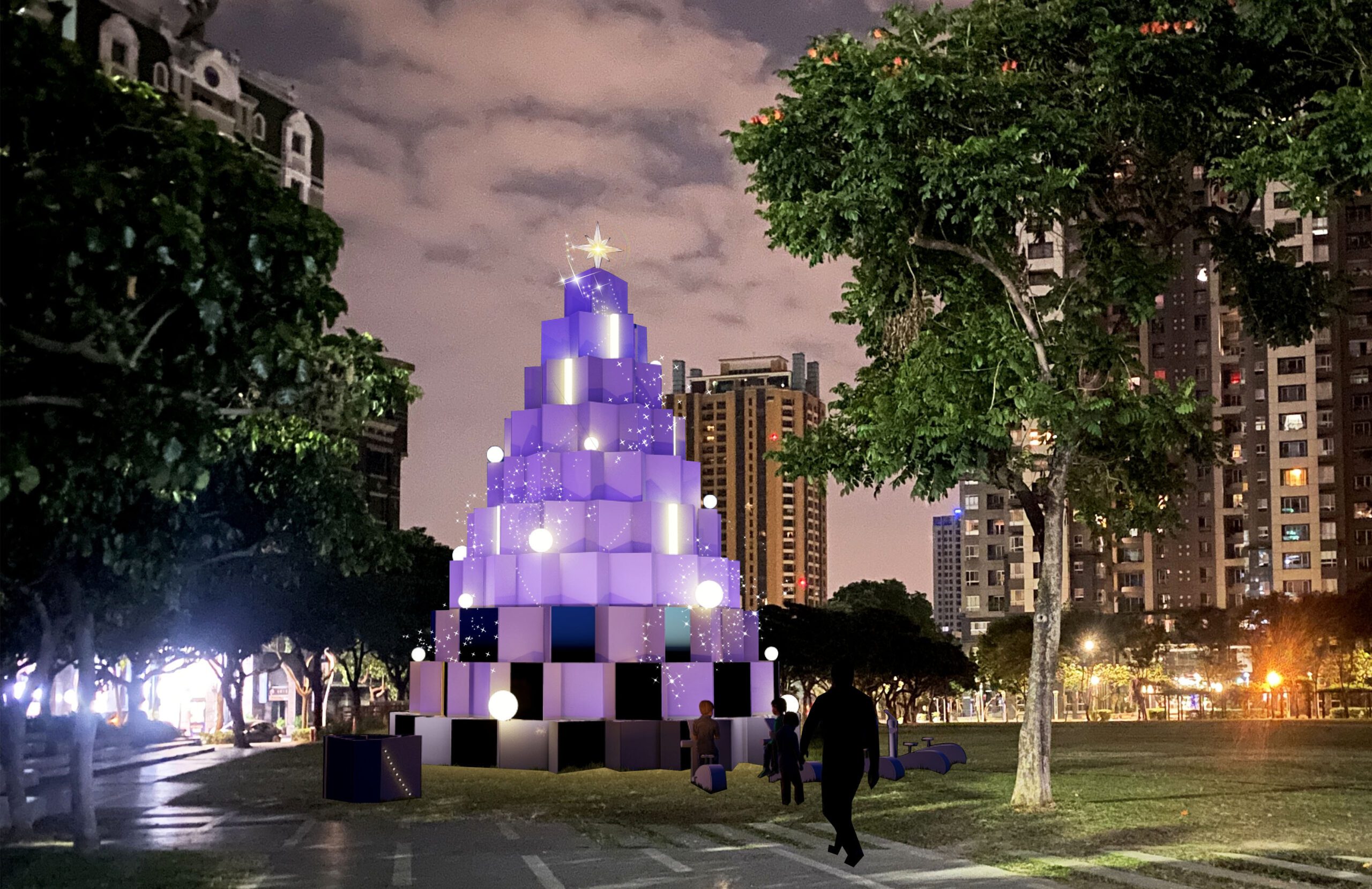 吳局長指出,「台中好聖誕」已邁入第六屆,每年以不同主題將節慶的幸福能量散播至城市各角落,今年並以「讓愛走動 Together」為主題,邀請市民以行動點亮城市,讓愛流動、幸福延續,現場更設置9米高夢幻主燈「聚.光 | Gather the Light」,以溫暖光影與柔霧紫為主色,搭配閃爍燈效與幾何堆疊結構,展現濃厚的現代藝術風格,現場更設置5台腳踏車發電裝置,民眾騎乘後可提升主燈亮度並播放祝福音樂,象徵「行動中的愛」,為城市注入更多溫暖與希望。