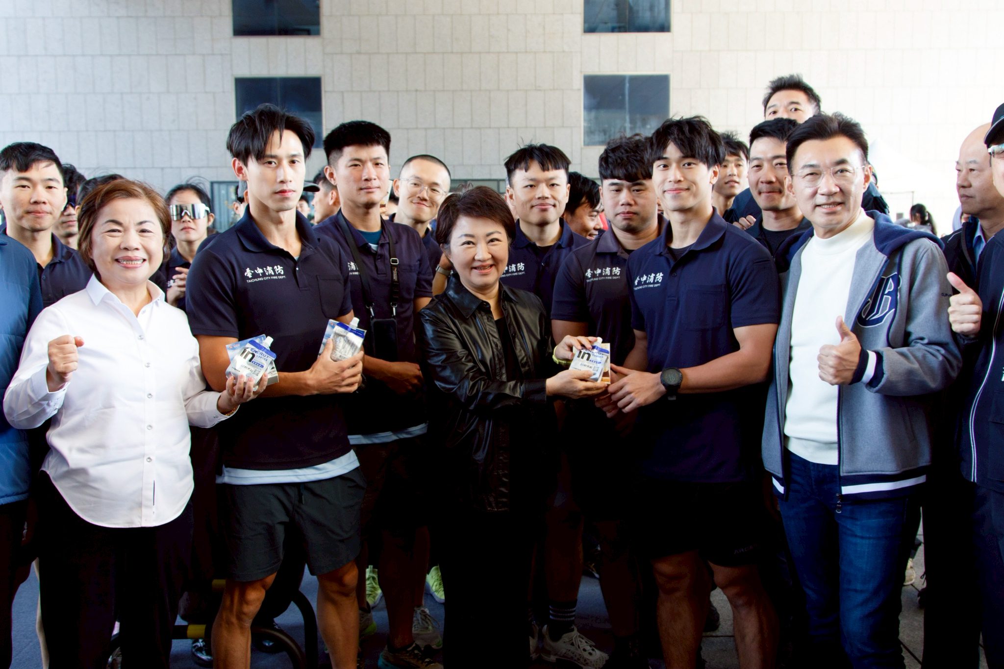 全球極限體能鋼鐵大賽在台中市府廣場持續熱力開戰!今(14)日賽事進入第2天,台中市長盧秀燕下午出席賽事,實際體驗多項運動設施,並前往暖身區近距離為國際選手、明星藝人以及台中最強地主隊加油,更親送幸運物「台中市徽」為台中隊加持。現場氣氛熱烈,展現城市作為國際運動舞台的能量。