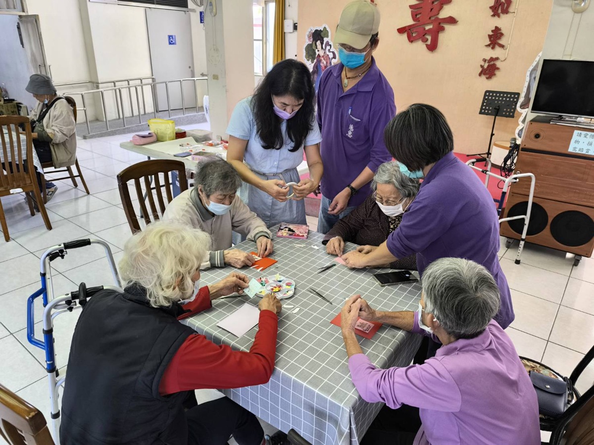 埔榮個管師余金英表示,透過多元的非藥物治療方式,包含藝術創作、感官刺激及人際交流,協助長者維持認知功能並提升生活活力。活動中,住民們以色紙、乾燥花材、貼紙等素材,用心打造專屬的聖誕祝福花卡與小禮盒,現場洋溢專注、愉悅與溫馨的氛圍。