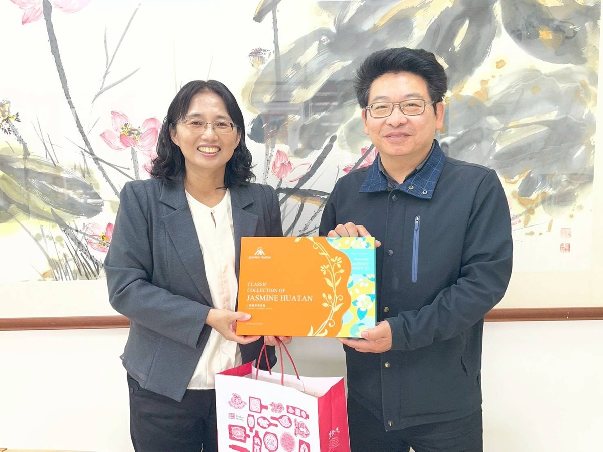 ▲由彰化縣文化局長張雀芬代表縣長王惠美與會,與國立新竹生活美學館葉于正館長一同出席獻上祝賀。(圖/文化局提供)