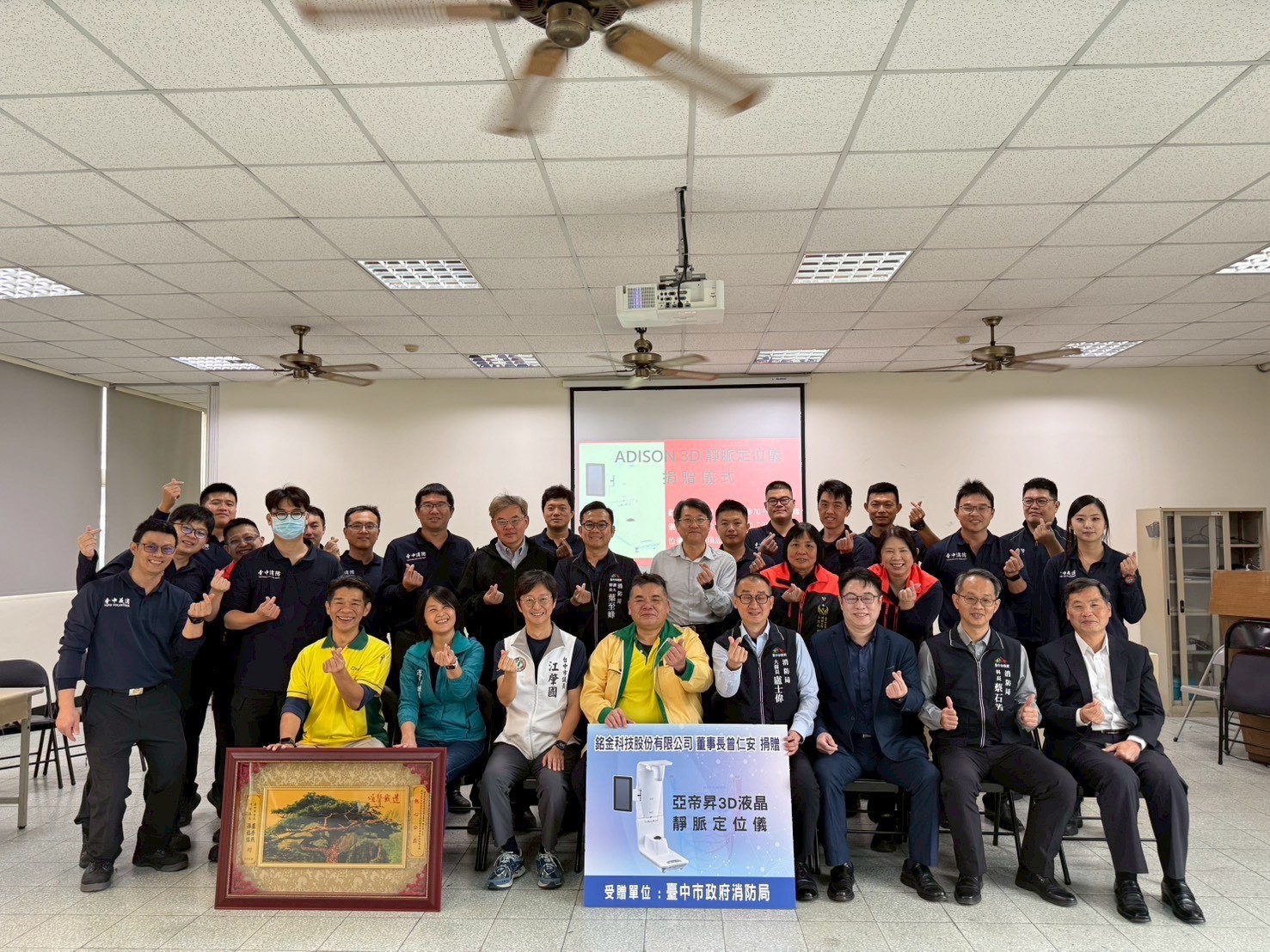 為提升台中市到院前緊急救護品質,強化救護人員於急救現場執行靜脈輸液的效率與成功率,銘金科技股份有限公司曾仁安董事長慷慨捐贈三組「ADISON 3D靜脈定位儀」予台中市政府消防局專責救護隊,以實際行動支持第一線救護工作。此項先進設備的導入,將有效提升急重症患者的即時處置品質,為市民爭取寶貴的黃金救命時間。