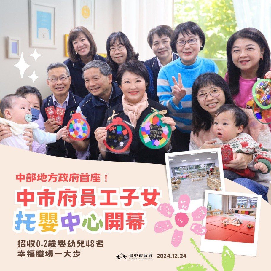 為持續落實市長「職場托育2.0」政策,人事處進一步指出,市府經調查豐原區陽明市政大樓1,500餘名員工的托育需求後,已於今年7月啟動第二座職場公托籌設作業,裝修工程於本月11日正式開工,預計明(115)年年中啟用。屆時,台中市政府將成為全國唯一同時設置2座職場員工子女托嬰中心的地方政府,展現市府以制度留才、與年輕世代並肩打拚的決心。