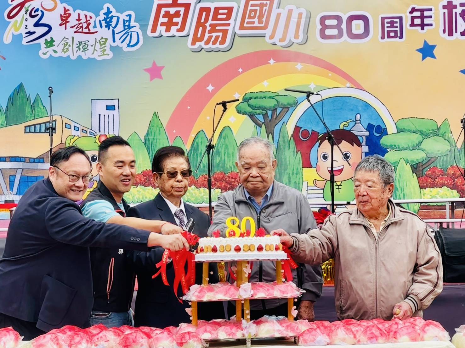 台中市規模最大的小學——豐原區南陽國小,今(20)日歡慶創校80週年,校園洋溢喜氣與感動。台中市副市長鄭照新、立法院副院長江啟臣及教育局副局長賴緣如等貴賓皆到場祝賀,與全校師生一同切下精心準備的生日蛋糕,為南陽國小80歲生日獻上最誠摯的祝福。