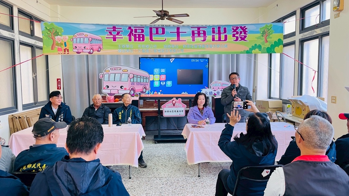 ▲鄉長林保玲向鄉親宣布新年度幸福巴士服務正式啟動,繼續照顧偏鄉民眾的交通需求。(圖/芳苑鄉公所提供)