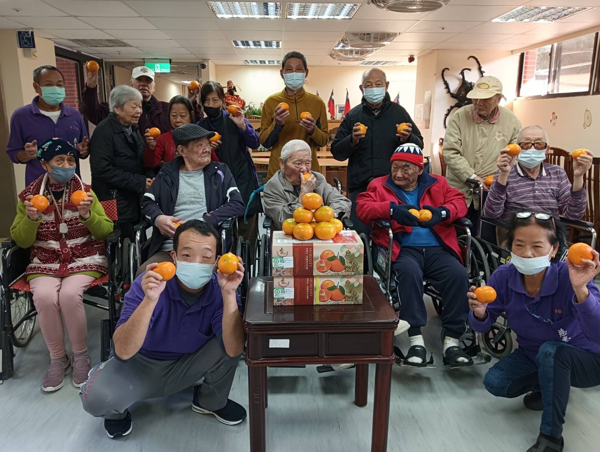 住民長輩在收到茂谷柑後,臉上洋溢著笑容,紛紛表示感謝政府的用心。有長輩分享,雖然年紀漸長、行動不便,但在榮家有完善的照顧與溫馨的生活環境,加上社會各界的關懷,讓他們感到十分安心,也對即將到來的新年充滿期待。