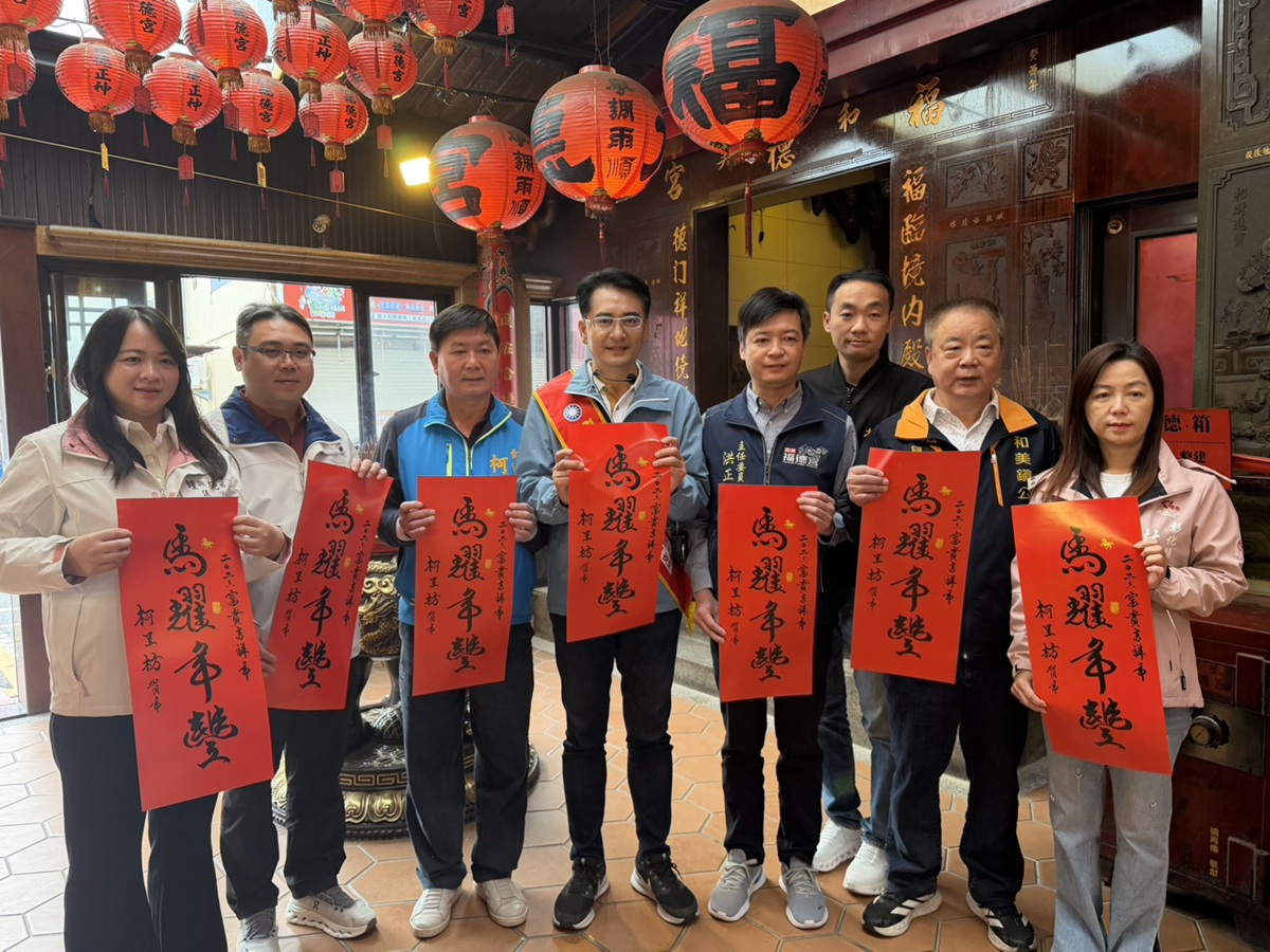 活動中,柯呈枋也正式發表馬年春聯「馬耀年豐」,象徵新的一年精神振奮、前程耀眼,期盼彰化持續發展、家家戶戶豐收圓滿。他表示,希望透過春聯一筆一畫,傳遞對土地的祝福,將溫暖的新年心意親手送到鄉親手中。