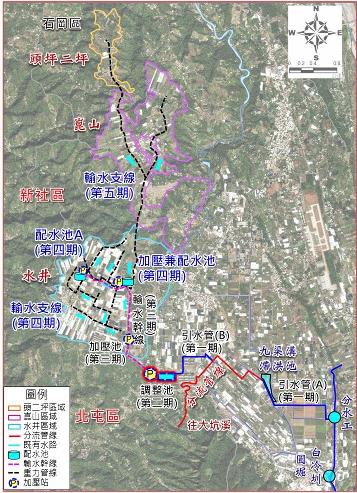 水利局進一步說明,白冷圳周遭適作農地擴大灌溉服務工程總經費約新臺幣5億元,分五期推動。第一期工程已完成,第二期調整池工程及第三期加壓引水工程刻正施工中,均預計於115年底完工;第四、第五期工程將進一步延伸引水至水井、崑山及頭坪二坪地區,並預計於115年底前完成招標。