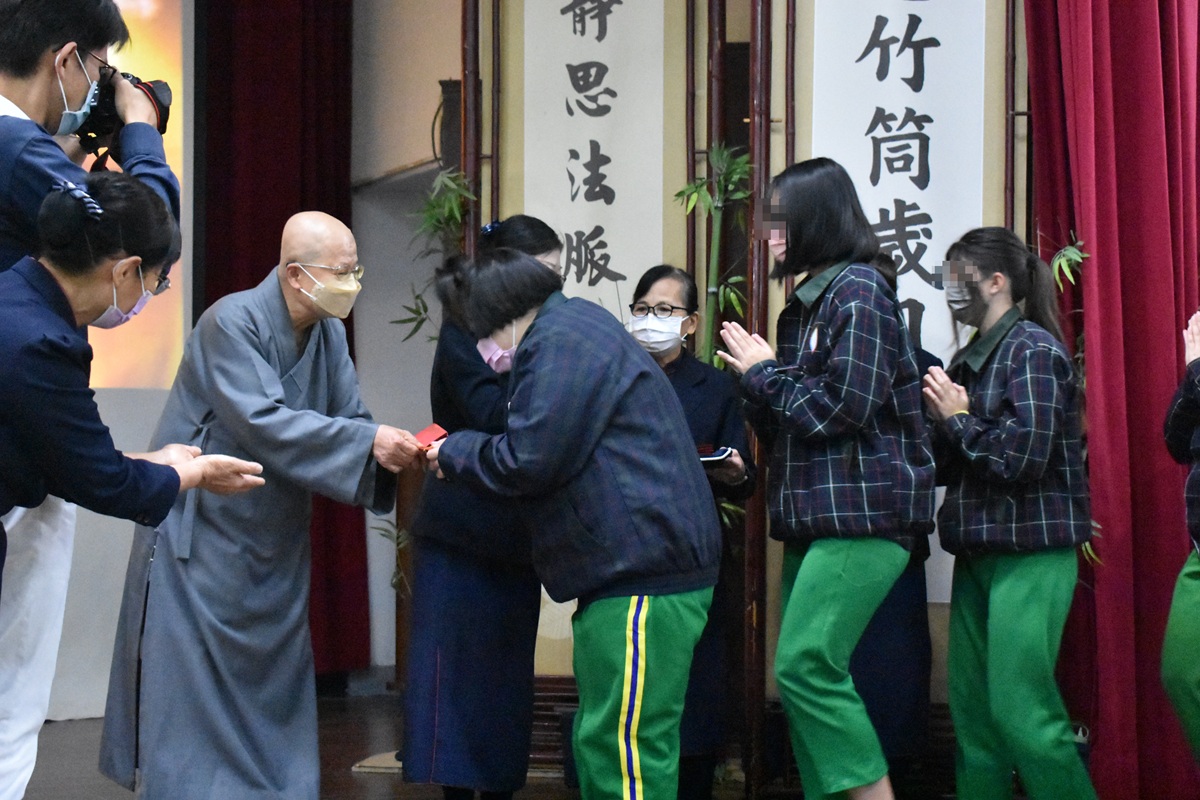 活動中,慈濟精舍師父帶領全校師生手捧福慧燈,齊聲祈禱、彼此祝福,為新的一年許下平安與善念的心願。隨後,師父親手逐一發放福慧紅包,將祝福與關懷傳遞到每一位師生手中,也象徵著慈濟善的精神在校園中持續傳承、生根發芽。