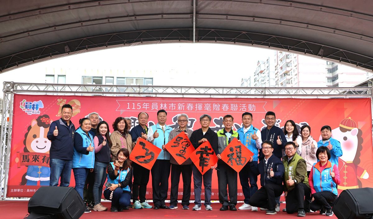 員林市代理市長賴致富表示,每年市公所辦理新春揮毫活動,旨在延續傳統文化,並讓家家戶戶除舊佈新迎新年。今天是員林市公所新春活動的首部曲,二部曲是員林燈會,將於2月14日點燈。相當感謝彰化縣王惠美縣長及代表會對於經費的大力支持,2026年「員林燈會」與「彰化月影燈季」、「花在彰化」並列彰化三大新年活動。員林第三部曲是元宵燈會,將邀請芒果醬等青年樂團共同歡慶。歡迎大家一同來員林賞燈、逛商圈、嘗美食,幸福快樂過新年。