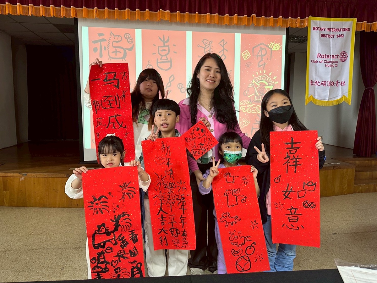 年節將至,彰化磺溪扶青社利用寒假伴彰化家扶兒迎接馬年到來!彰化磺溪扶青社由社長王肇笙召集社友舉辦新年書法趣味活動,由社友同時是糖篆藝聚空間負責人賴𤩷容帶領彰化家扶30名兒少創作屬於自己的春聯,期盼透過親手書寫春聯、吉祥字與簡易甲骨文字,體驗文字演變的趣味與歷史。活動不僅讓孩子們感受年節喜氣,也引導他們了解漢字從古至今的演變,培養對傳統文化的興趣與尊重。藉由創作與分享,提升自信與表達力,讓家扶兒都能帶著祝福與成就感迎接新年。