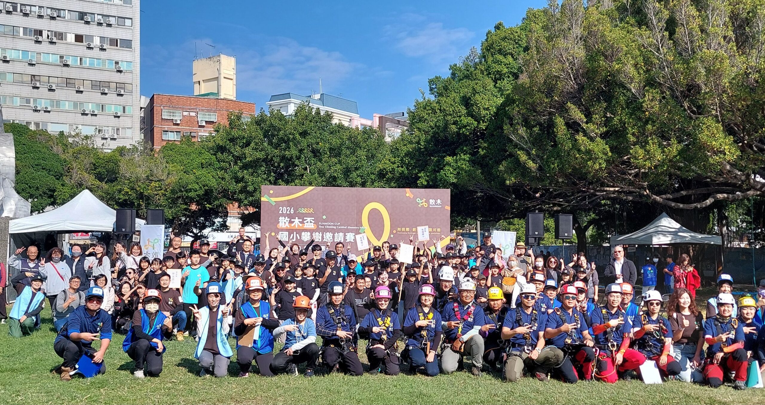 由台中市政府運動局與張秀菊社會福利慈善事業基金會合辦的「2026散木盃國小攀樹邀請賽」今(4)日於台中公園熱鬧登場。賽事為全台首創、專為國小學童設計的攀樹競賽,以「提升技術、凝聚感情、善做公益」為核心理念,透過安全、專業的攀樹體驗,讓孩子在親近自然的過程中挑戰自我,培養自信、信任與合作能力,讓運動與環境教育相互結合。