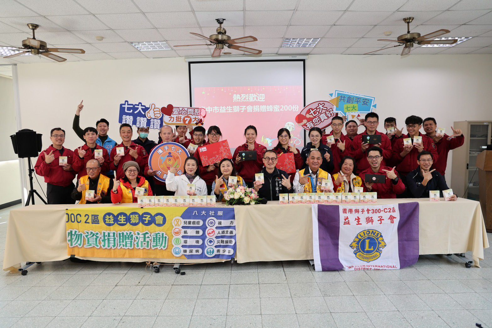 臺中市益生獅子會會致贈蜂蜜禮盒予臺中市消防局第七大隊暨所屬分隊同仁
