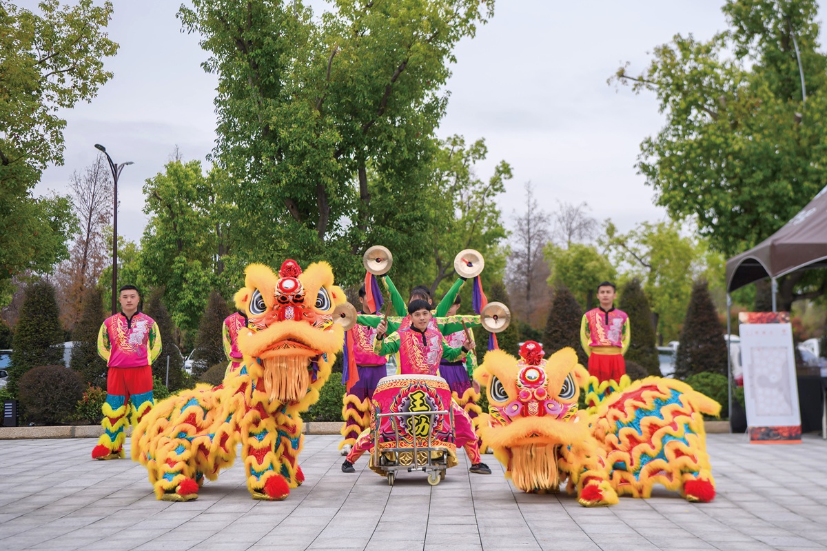▲園區內庭園景觀與水景相映、百年歷史建築交織出濃厚人文氣息。 初一限定的舞獅團演出。(圖/成美文化園提供)