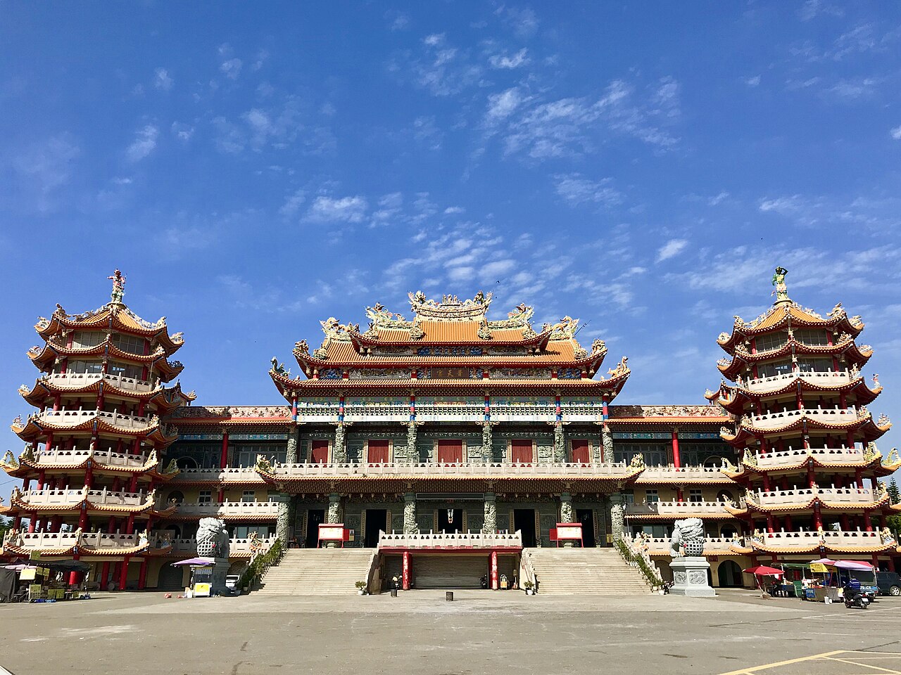 走訪芳苑鄉來到知名普天宮更是要來參拜媽祖,普天宮後方的沙丘是風水穴位中的「白馬峰」,相傳在清朝時期曾有白色神馬出現,普天宮也成為彰化縣沿海地區的信仰中心之一。普天宮神尊各個神威顯赫,民國90年觀音浮壁先登殿救世,顯化法相至今依然清晰。宮廟更積極為保存文化而努力,收藏有『湄洲船頭媽祖』及『賢娘港媽祖』神尊,與宮廟內『軟身媽祖』同為鎮宮之寶。其中凌霄寶殿更有黃金殿的美譽。整體的石雕木雕是一殿比一殿更加精采,欣賞廟宇建築的格局和裝飾、彩繪等工藝。