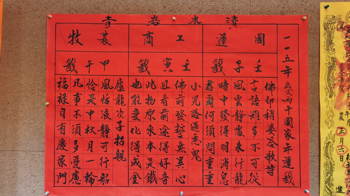 擁有300年歷史的彰化縣定古蹟社頭鄉清水岩寺於大年初五上午抽年運籤,在國運、工商雖抽出中平及平籤,正值關稅風雲再起之際,對應清水岩寺工商籤抽出平籤,籤文「佛前發誓無異心,且看前途得好音,此物原來本是鐵,也能變化得成金」,屬於平籤。農牧籤抽到上上籤,籤文「風恬浪靜可行船,恰是中秋月一輪,凡事不須多憂慮,福祿自有慶家門」,新的一年農牧業運勢可期。