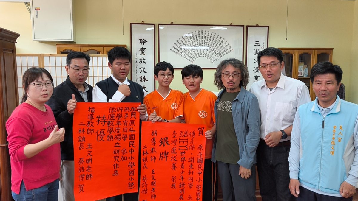 開學第一天,彰化縣二林鎮原斗國中小校園喜氣洋洋!學校於今日舉辦「開學見獎、雙喜臨門」記者會,宣布本校學子在全國及國際選拔賽中取得輝煌戰績。洪子宥同學榮獲「114學年度獨立研究作品徵選」數學類【特優】;傅彥傑與謝秉軒同學則於「2026 IEYI 世界青少年發明展:臺灣選拔賽」中勇奪【銀牌】。