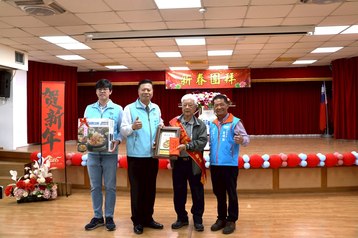 新春團拜同時舉辦「特優里長」及「離退鄰長」表揚活動。本市中山里楊鳳塔里長長期致力於鄰里服務,獲得內政部「114年全國特優里長」殊榮。