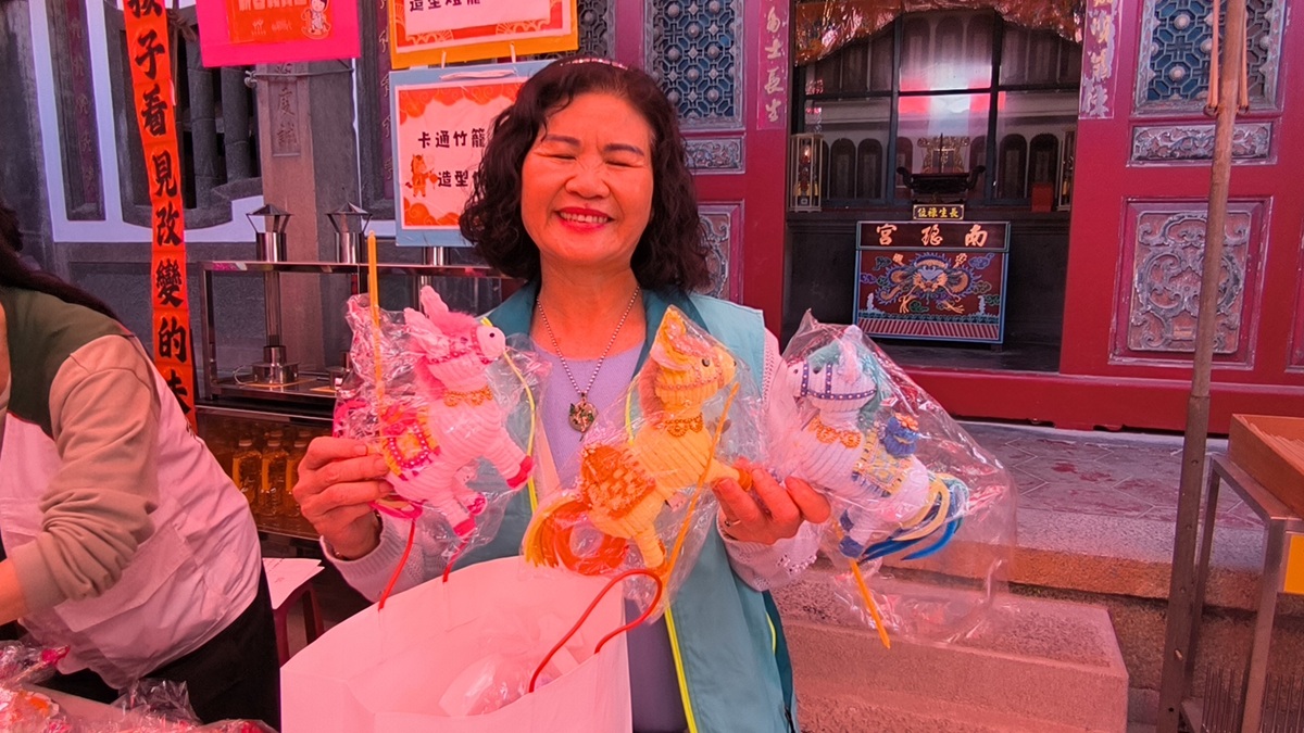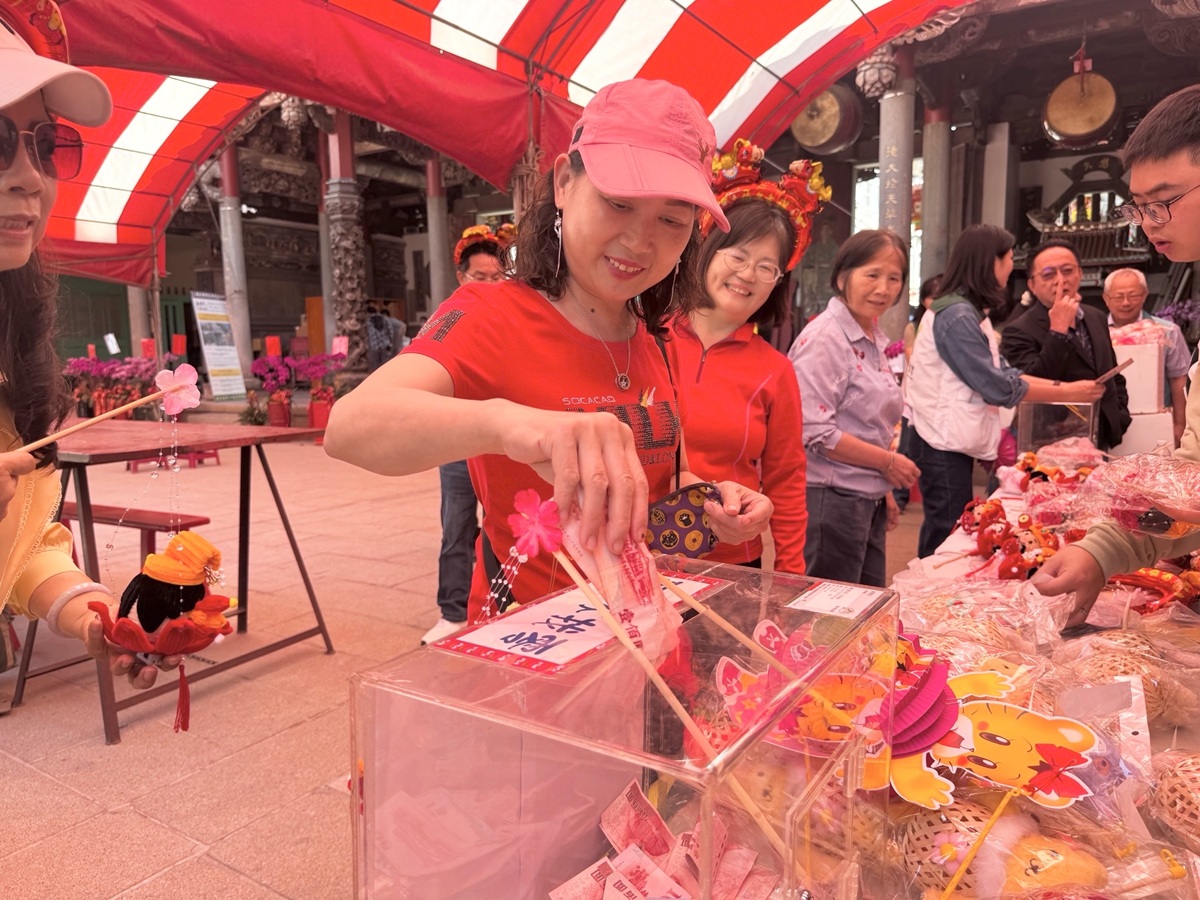 ▲民眾在廟前認購燈籠,不僅參與文化傳承,也將愛心化作實際行動,支持弱勢兒少安心上學。(圖/記者蕭麗鳳攝)