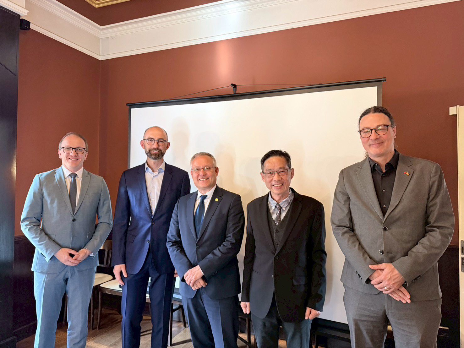 德國薩克森自由州首府德勒斯登副市長Jan Pratzka於3月1日親自接待台中市政府經濟發展局長張峯源及交流團隊,肯定台中在半導體、精密機械與工具機領域具備完整供應鏈與產業聚落優勢,並表達深化雙方合作意願。此次會晤延續今年1月德國聯邦議院議員柯約博率團拜會台中市政府的交流成果,雙方就產業發展現況與水、電、人才等共同挑戰進行深度對話。