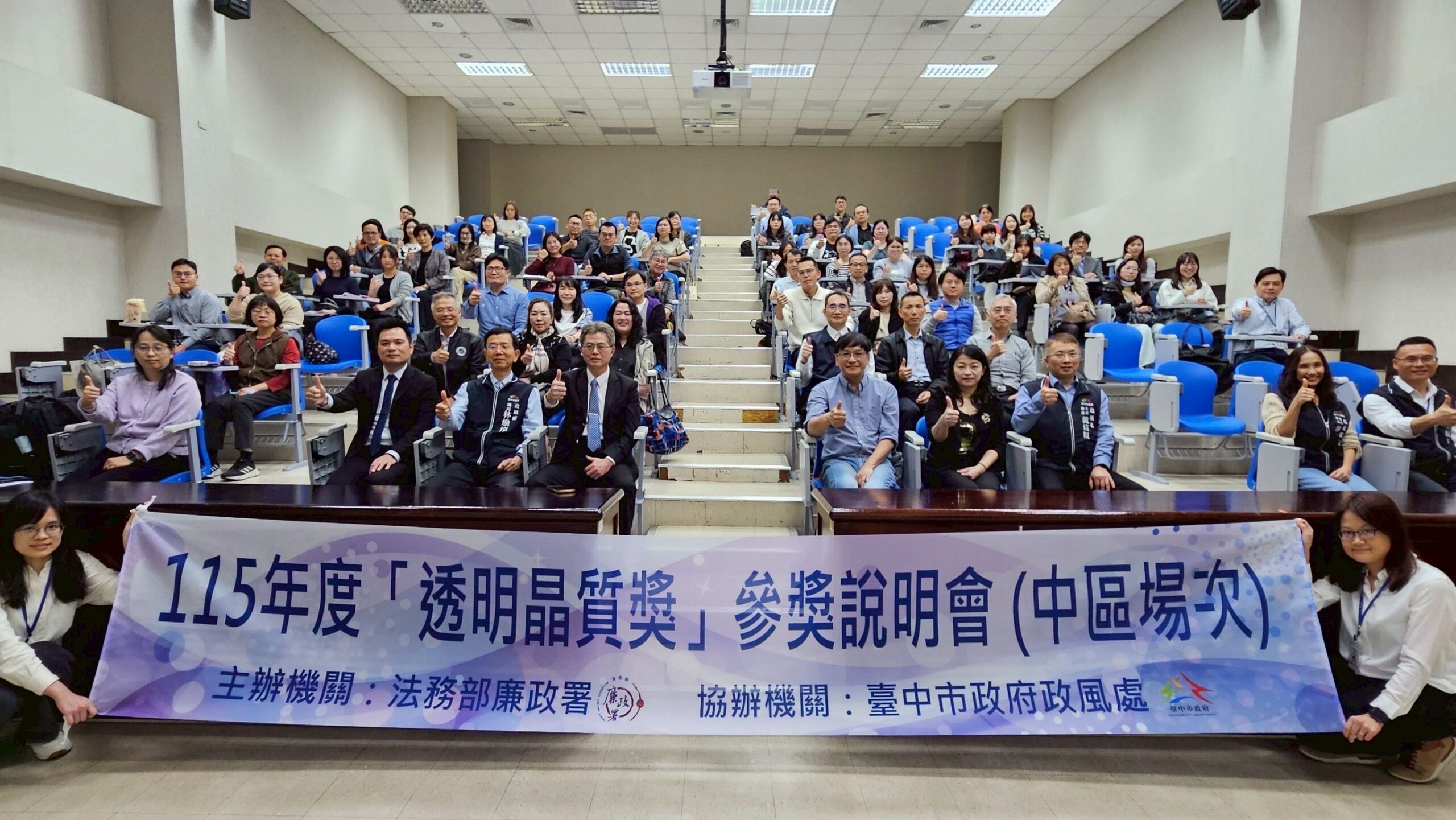 為貫徹「廉能政府」核心價值,並激勵各機關爭取廉能治理最高榮譽的獎項,法務部廉政署於今(4)日在台中市政府舉辦「第4屆透明晶質獎參獎說明會(中區場次)」。此次說明會市府政風處全力協助辦理,邀集中部地區各中央與地方機關首長、主管同仁齊聚交流,透過深度解析透明晶質獎評選標準與優良案例分享,引領各機關轉化思維,導入廉潔與效能概念及語言,將行政透明落實為市民有感的施政治理成果。