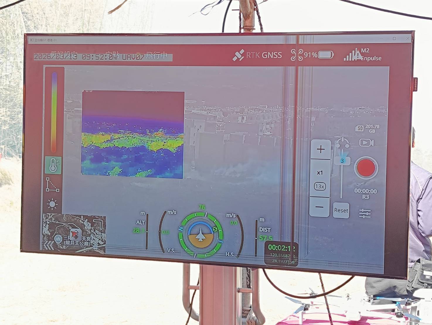 為提升科技救災整合能力,台中市政府消防局今(13)日上午於龍井區三陽玉府天宮後山辦理「115年遙控無人機防救災應用演練」,運用多旋翼無人機、熱顯像設備及吊掛裝置,結合AI影像辨識與即時影像傳輸技術,模擬災害現場應用情境,展現運用科技輔助救災的實際成果。