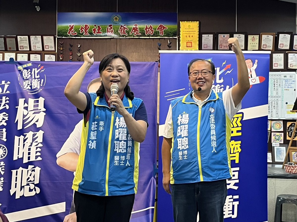楊曜聰的首場問政說明會(13日)晚上在花壇鄉花壇社區活動中心舉行,當地的花壇鄉長顧勝敏、議員顧黃水花與代表會主席沈文盛、鄉代陳永和、翁啟祐與花壇村長吳東平、長沙村長柯金地、婦女會理事長蘇秀勤都到場支持,縣農會總幹事張建豐與縣議員白玉如也到場助講,為楊曜聰與總統參選人侯友宜拉票。