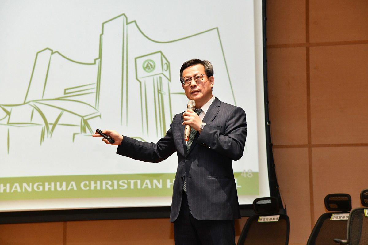 ▲總院長陳穆寬教授報告彰基這一年的重要事工與成長。(圖/彰基提供)