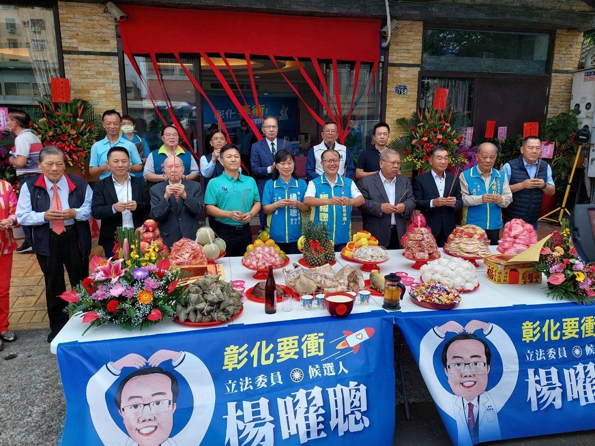 彰化縣第二選區立委候選人楊曜聰今(29)日良辰吉時舉行競選總部揭牌儀式,縣長王惠美、副議長許原龍到場力挺,前議長白鴻森也前來祝賀,彰化市、花壇、芬園等地的村里長、各級民代與黨部、社團支持者、熱情民眾數百人,擠滿競選總部裡裡外外,現場熱鬧滾滾,「凍選聲連綿不斷」,氣勢如虹。
