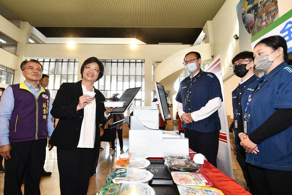 王惠美表示,為了讓同學們更便利的領餐及響應節能減碳政策,縣府去年起率先推動數位化幸福餐券,與一卡通電子票證股份有限公司共同合作,不僅是全國第二個,也是非六都第一個,學生只要持彰化縣數位學生證到五大超商就可兌領餐點。